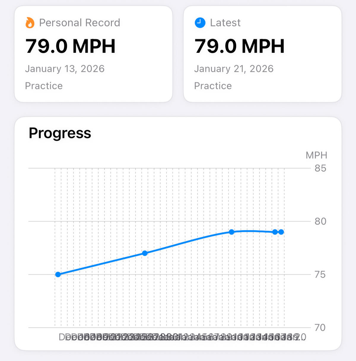 Track PRs for velocity, batting, and more.